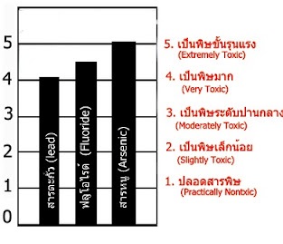 เมื่อดูกราฟซ้ายมือแสดงระดับความรุนแรงของสารตะกั่ว สารหนูและฟลูโอไรด์ แ่ล้วแทบเป็นลมล้มตึงเมื่อเห็นค่าระดับความเป็นพิษของฟลูโอไรด์ที่พุ่งแรงแซงสารตะกั่วไปอยู่ที่ระัดับ 4 เกือบๆ 5 หมายความว่ามันเป็นพิษมากกจนถึงขั้นรุนแรง! ยิ่งถ้าบ้านใครมียาฆ่าหนูและแมลงสาบแล้วลองพลิกดูส่วนผสมนะ คุณอาจจะช็อกตาค้างมากกว่านี้ เพราะสิ่งเดียวที่เป็นส่วนผสมในยาเบื่อหนูคือฟลูโอไรด์อย่างเดียวเลยล่ะ ซึ่งความจริงแล้วฟลูออไรด์ได้นำมาใช้ครั้งแรกในเชิงอุตสาหกรรมเพื่อใช้เป็นยาเบื่อหนู ถ้าถามว่าแล้วทำไมมันถึงมาอยู่ในยาสีฟันล่ะ จริงๆแล้วฟลูออไรด์ที่มีประโยชน์ต่อกระดูกและฟันอย่างแท้จริงคือมันคือแคลเซียมฟลูออไรด์ ที่เกิดขึ้นเองตามธรรมชาติ แต่ที่ผสมอยู่ในยาสีฟันมันคือ "โซเดียมฟลูออไรด์" เป็นสารพิษที่ผลิตขึ้นในโรงงานซึ่งมีราคาถูกกว่า และถ้าใครที่คิดว่าฟลููโอไรด์ช่วยให้ฟันแข็งแรงป้องกันฟันผุ แบบที่ท่านทั้งหลายได้ยินจนคุ้นหูคุ้นตากันดีในโฆษณาทีวีตั้งแต่เด็กๆคงต้องคิดใหม่ เพราะมันกลับเป็นตัวการทำให้เกิดฟันตกกระที่เรียกว่า Dental Fluorosis เกิดเป็นรอยกระดำกระด่างที่ผิวฟันจากการสะสมของสารพิษฟลูโอไรด์ในระยะยาว แถมยังมีผลต่อกระดูกทำให้กระดูกพรุนด้วย ข้อมูลจากวารสารการแพทย์ของรัฐนิวอิงแลนด์ สหรัฐอเมริกา รายงานว่า มีการใช้สารฟลูออไรด์เพื่อรักษาผู้ป่วยที่เป็นโรคกระดูกพรุน (Osteoporosis) ผลก็คือมีอัตราการเกิดกระดูกตะโพกร้าวสูงขึ้นกว่าปกติ และในปี 1993 นักวิทยาศาสตร์จากองค์การป้องกันสิ่งแวดล้อมของสหรัฐอเมริกาได้ออกมาต่อต้านการเติมฟลูออไรด์ในน้ำดื่มและอาหาร นักวิทยาศาสตร์เหล่านั้นได้ยืนยันว่า ฟลูออไรด์ไม่ได้ป้องกันฟันผุ ผลตรงกันข้าม กลับมีเหตุการณ์แน่ชัดว่า มันเป็นตัวก่อมะเร็งได้ http://www.biowish.net/pages/med.htm